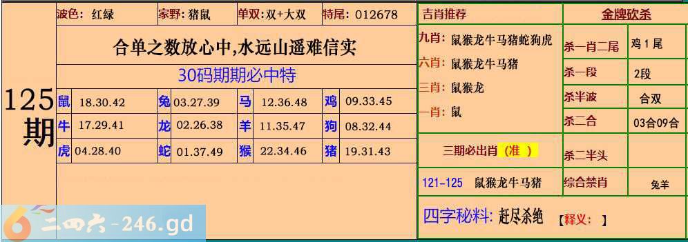 2025126期126期:30码期期必中特