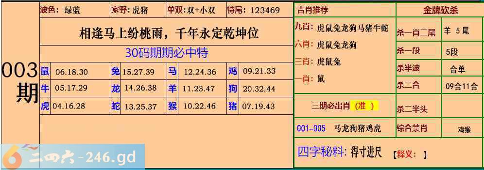 003期:30码期期必中特